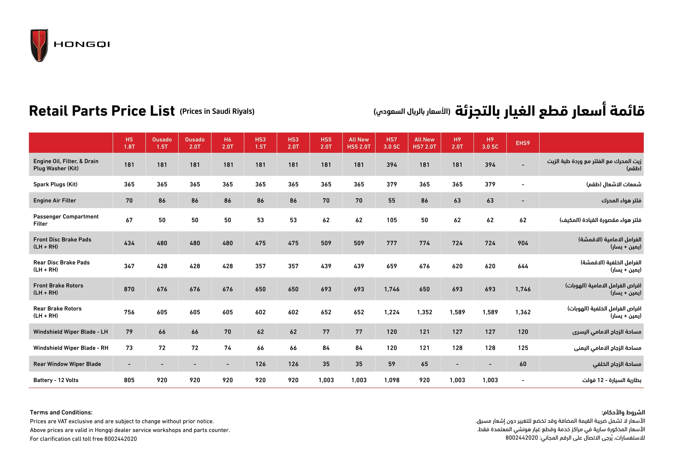 قائمة أسعار قطع الغيار بالتجزئة
